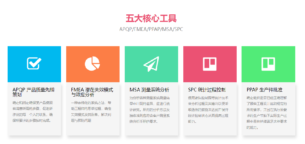 IATF16949五大工具分別是:統(tǒng)計(jì)過程控制(SPC);測(cè)量系統(tǒng)分析(MSA);失效模式和效果分···